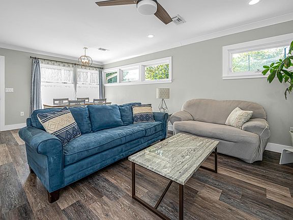 Renovated MidCentury Charmer! Created by owners who are both architects and designers, this is a must-see! Beautiful 3 bedroom/2 full bath w/ finishes most homeowners dream of. Updated completely in the last 6 yrs, including details like USB outlets & built in nightlights. Open floorplan with neutral colors & upscale finishes. Kitchen features stainless appliances, large island w/ waterfall granite counter, gas range, & ample storage. Dining area flows into a living room w/ shiplap accent wall & historic sinker pine mantle. Guest bedrooms easily access a full guest bath. Private owner's suite, located at the rear of the home, features angular ceiling, two separate closets, bathroom w/ large walk-in shower & double vanity, plus French doors to the fenced backyard. Rear patio is a great spot to entertain, overlooking an immaculate lot with a vintage fruiting pear tree, small raised bed garden & utility building w/ storage loft. Don't miss your chance on this home!