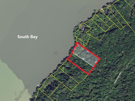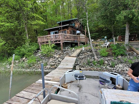 2 Waterfront parcels, one is the camp (.85 acres) the other is 0.68 acres including a spring fed well to the left of the camp. Spring fed well provides water for both parcels. 50 feet of dock access. Only accessible by boat - can approach from Death Rock Way by land but it is very steep and not practical. South Bay State boat launch approximately a mile from the camp (see photos). Buyer will need to provide their own access. Everything stays with property, owner is not obligated to remove anything (except the boat). Upstairs sleeps 5. Amazing for fishing! Catfish, bullhead, bass, gar have all been caught right off the dock. Bass and catfish tournaments include this Bay! Large shed for storage. Stand up shower and vanity in bathroom.