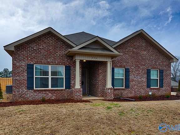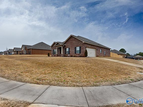 You will love this newly built 3 year old home with upgrades and close proximity to Huntsville & Redstone Arsenal! Nice corner lot, 3 bed/2bath, 2 car garage, has lots of great open space and features. The kitchen has custom cabinets, granite countertops, upgraded backsplash & a large island. Dining area upgraded accent wall, all bathrooms/kitchen have upgraded faucets, living room has trey ceilings, upgraded shiplap accent wall with electric fireplace. Owner suite has a walk in closet, trey ceiling, large double vanity, separate shower and soaking tub. Certified smart home features with security system, Fenced in backyard & sprinkler system.