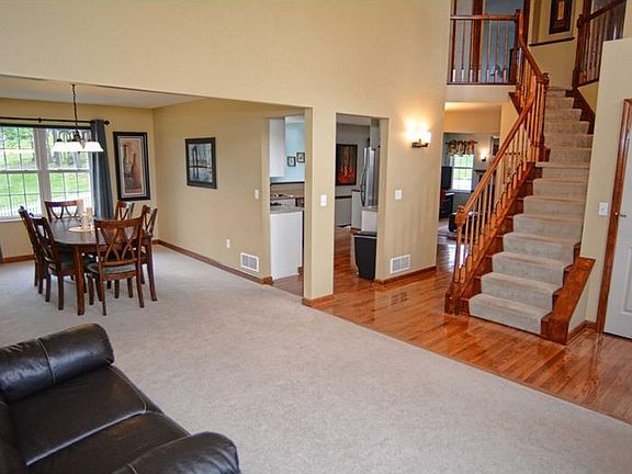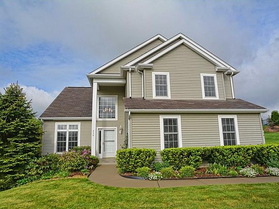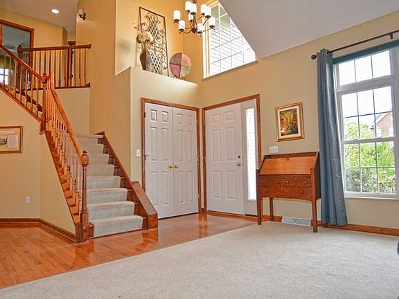 Situated on over an acre of land, this striking custom built home in the desirable Whispering Pines neighborhood features 4 bedrooms, 2 full and 2 half baths with a full finished walk out lower level. This home is sure to impress even the most discerning buyer. The vast 2 story foyer boasts a plethora of natural sunlight while showcasing the custom built details. The 2 story formal living room features picture windows and neutral decor. Accessible to the kitchen is a generous dining room, with scenic views of the land. The kitchen is the heart of the home and features hardwood flooring, stainless steel appliances an abundance of counter space and cabinetry and a desk area. The casual dining area off of the kitchen has a vaulted ceiling with sky lights and overlooks the expansive fenced in and wooded backyard. The expansive family room features a custom fireplace, large windows and hosts access to the rear deck and oversized fenced in yard and the extra acreage beyond the fence. The owner's suite is spacious enough for any amount of furniture and is highlighted with a spa-like bathroom. The 3 bright guest bedrooms are spacious, airy, host ample storage and custom details such as built-ins. The finished walk out lower level is an entertainer's dream with a half bath and unfinished versatile space to suite your needs. A Must See!