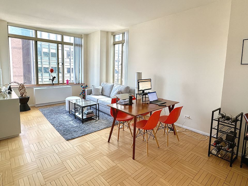 Perched on the 34th floor, this elegant corner one-bedroom home boasts expansive northeast exposures with breathtaking views of the Manhattan skyline and the East River. The spacious living and dining area, framed by oversized windows, is bathed in natural light throughout the day. A windowed kitchen offers both functionality and charmideal for both entertaining and quiet evenings at home. The generously sized primary bedroom is a peaceful retreat featuring open northern views and a full wall of closets, providing abundant storage.