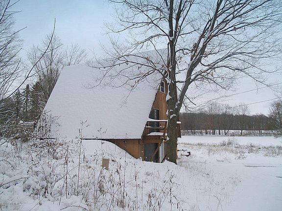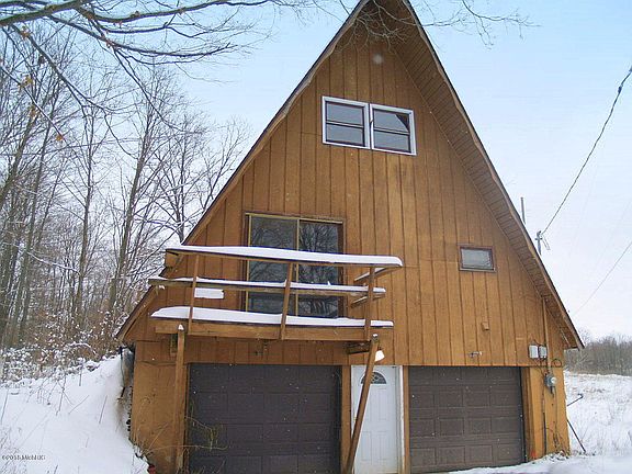 This 2 acre setting is hard to come by! Visit this A-Frame home with 2 bedrooms and 1 full bathroom. This A-Frame rests on 2 acres of land and features vaulted ceilings, plenty of window light, open kitchen, built ins and a two stall attached garage and storage shed with electrcity. This home will need some TLC. All appliances to remain. Explore the possibilities!Visit today!