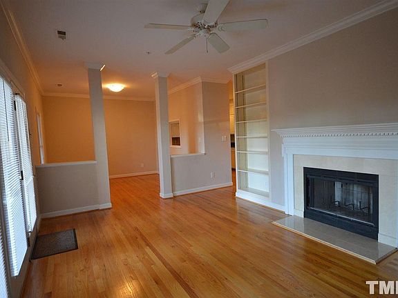 Beautiful home in the heart of Raleigh. All hardwood flooring. Wood burning fireplace and built in book shelves in living room. Updated kitchen with solid surface counters, stainless appliances and separate dining room. Washer and dryer included! Double Master bedrooms with walk-in closets. Covered, private porch. Gated community and fenced parking. Pet fee $500. HOA "move-in fee" required by HOA paid by owner. First HOA parking pass free, second vehicle $50.