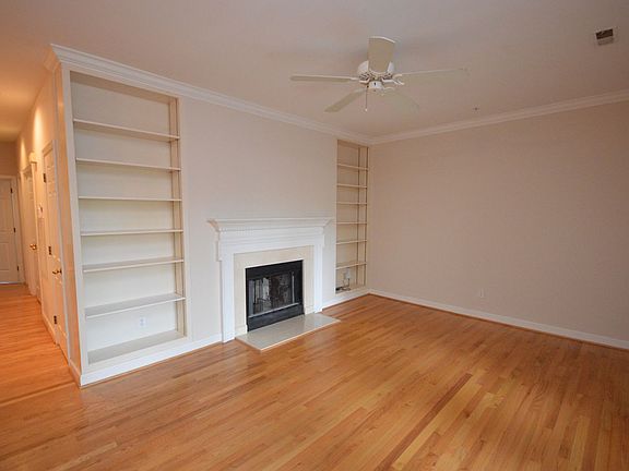 Beautiful home in the heart of Raleigh. All hardwood flooring. Wood burning fireplace and built in book shelves in living room. Updated kitchen with solid surface counters, stainless appliances and separate dining room. Washer and dryer included! Double Master bedrooms with walk-in closets. Covered, private porch. Gated community and fenced parking. Initial pet fee $500. Dog weight up to 45 lbs only as per HOA. HOA "move-in fee" $200. First HOA parking pass free and second vehicle $50 per year. Water/sewer/trash included with rent.