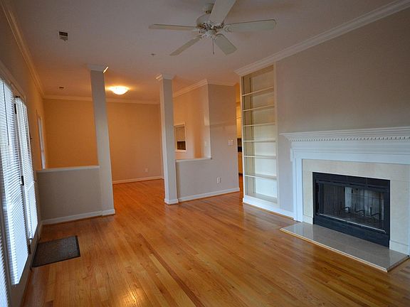 Beautiful home in the heart of Raleigh. All hardwood flooring. Wood burning fireplace and built in bookshelves in living room. Updated kitchen with solid surface counters, stainless appliances and separate dining room. Washer and dryer included! Double Master bedrooms with walk-in closets. Covered, private porch. Gated community and fenced parking. Pet fee $500. Dog weight up to 40 lbs only as per HOA. HOA "move-in fee" required by HOA paid by owner. First HOA parking pass free, second vehicle $50 per year.