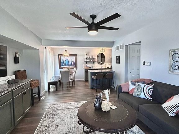 Beautifully remodeled 3 bed/2 bath home located in a quiet neighborhood in Kingman, KS is just waiting for someone to call it HOME. Exterior - new pre-painted SMART siding, new soffits, new facia, new gutters and a newer roof (5 years). The interior boasts approximately 1700 sq. ft. of living area on one-level, 3 nice size bedrooms, 2 gorgeous ALL NEW bathrooms, every inch has new paint, new trim, new lighting fixtures and new flooring! With 2 living areas, a kitchen breakfast bar, a special coffee bar, and a sliding door out to the patio, this home really does have it all - just great family living! The home has been featured on Airbnb, as The Eagle's Nest, and has had many visitors come and stay over the last year. The home has been loved by all who have stayed here - just take a look at our reviews - 4.9/5.0! While the Airbnb has been quite successful, the owners are ready to sell to pursue other ventures. Home is available with no furnishings other than the appliances (including washer and dryer), or if you are interested in purchasing the home fully furnished, just let the listing agent know and we will provide a list of all items that would be part of the home purchase. Listing price is unfurnished.