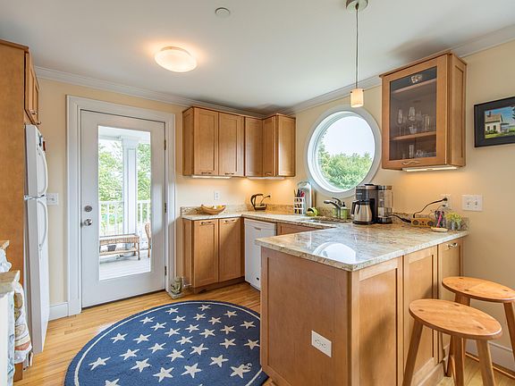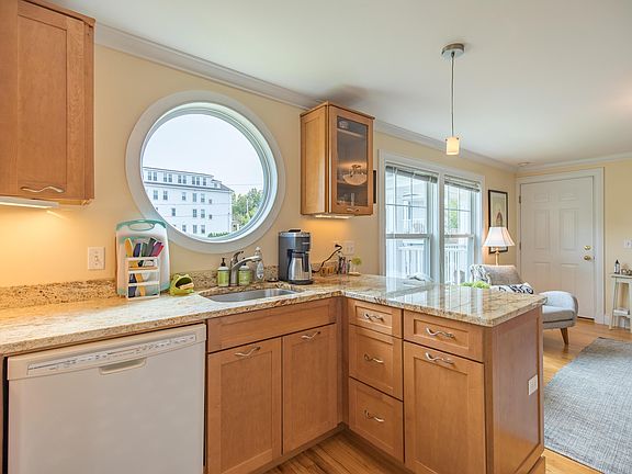 This cozy two bedroom condo at the eastern tip of Portland's peninsula offers the very best of Munjoy Hill. Enjoy easy access to all Downtown and the Old Port have to offer or stay in and relax in the charm of this light-filled and airy space. The kitchen has a breakfast bar and the refined layout allows for maximum counter and cabinet space. A classic port-hole window over the kitchen sink is a nod to the city's sea-fairing history. The primary bedroom provides large windows with lots of natural light. The second room makes a great bedroom or office space. A designated laundry space is conveniently placed right outside the well-appointed full bath. Watch the sun set from the large private deck overlooking the Eastern Promenade park and Casco Bay. Appreciate the best of Maine's largest city from this delightful condo with the best dining blocks away or the serene ocean just outside your doorstep.