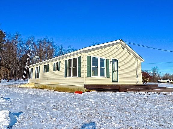 Imagine, waking up every day in a gorgeous country setting with sweeping long-range mountain views! This sweet Ranch offers single level living, has a generous size eat-in kitchen, attractive cabinetry and corner windows that bring the outdoors inside for a relaxing dining experience. The living room is warm and inviting, with beautiful wood flooring and double windows to take in even more distant views. Adding to this home's appeal is a master bedroom, with a master bath and walk-in closet, plus two more bedrooms share a second full bath. Additional amenities include, an exterior deck off the kitchen, a full basement with bulkhead, a utility shed, a paved driveway, and all appliances are included in the sale. The home has been freshly painted and move-in ready. Surrounded by nature, this property backs up to Cook State Forrest and a short drive to the Vermont border. Country living at it's best and easy to show.