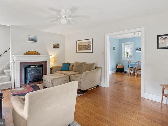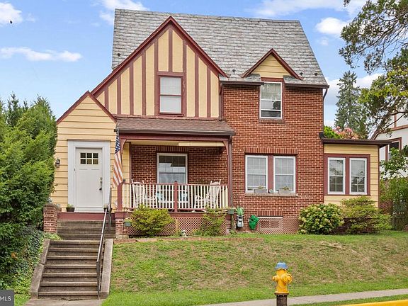 Welcome to Mt Penn! This classic Tudor offers charm and character common to this era of construction, including cute entry foyer, spacious living room with fireplace setting, adjacent dining room, and hardwood flooring throughout. The bright natural lighting of the kitchen augments the French door cabinets and black and white tiled flooring. Off the dining area is an enclosed room well-suited for den, home office, sunroom, or play area. The 2nd level is home to two bedrooms with plenty of closet space, hardwood flooring, and a large full bathroom that includes both a shower stall and bathtub! The renovated 3rd floor bedroom provides ample space, with built-in drawers, cabinets, and two more closets. The unfinished concrete basement offers easy access to washer/dryer (incl w/sale), mechanicals area including gas furnace and hot water heating systems, and additional sections for workspaces or storage. Newer style vinyl windows throughout is certainly a plus feature. The front porch looks out on a beautiful landscape, perfect for watching sunrises, and the additional side porch is perfectly situated for privacy. Home is a short distance to schools, hiking trails, community pool and rec center, as well as open area with running track, baseball, and soccer fields. Make an appointment to visit today!