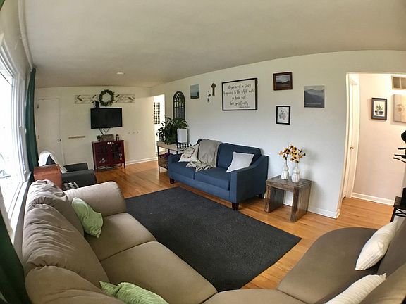 Lovely and clean brick ranch with attached garage. Lots of natural light from full size updated windows throughout. Three bedrooms. Master bedroom pictured with king size bed. Updates include whole house plumbing in 2016, updated grounded electric. Newer appliances, tub surround, vanity and toilet. Full unfinished basement. Freshly painted eat-in kitchen. Homeowners have enjoyed easy access to bike path and low-traffic neighborhood great for walks and deer sightings. Front and back yards attract birds, butterflies and other wildlife with edible plants including several fruit trees and plants already producing. Beautiful hardwood floors and a spacious front room that has served a family of 4 very well.