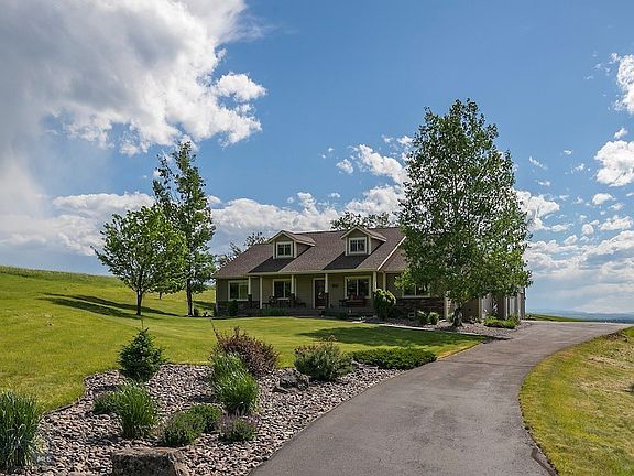 This exceptional home on a spacious cul-de-sac lot offers comfort and scenic views. The single-level layout includes two bedrooms, a large master, an office near a half bath, and an upstairs bonus room. The master bathroom is large and bright with in floor radiant heat and a remodeled shower . The enclosed sun porch, perfect for workouts, leads to the back deck which is wired for a hot tub. The kitchen features knotty alder cabinetry, an eating bar, a dining area, and a pleasant dining room. Additional amenities include hardwood floors, a gas fireplace, RV carport, and a circular driveway. The oversized 2 car garage allows for additional storage and work space. The landscaped yard boasts daffodils, peonies, bleeding hearts, and hostas. There is plenty of guest parking and a RV pull through carport space, . Watching storms roll in from the west is always a treat.