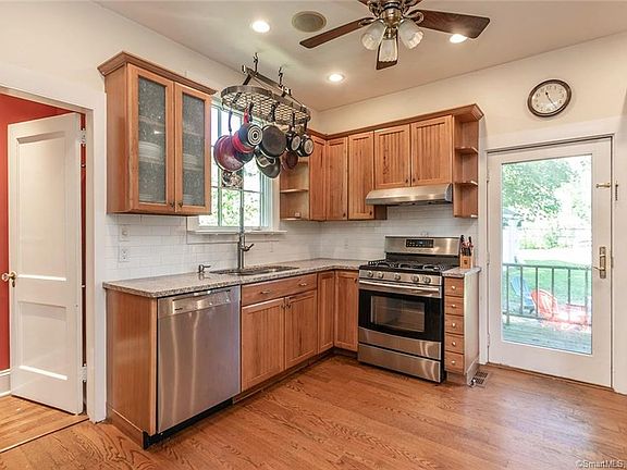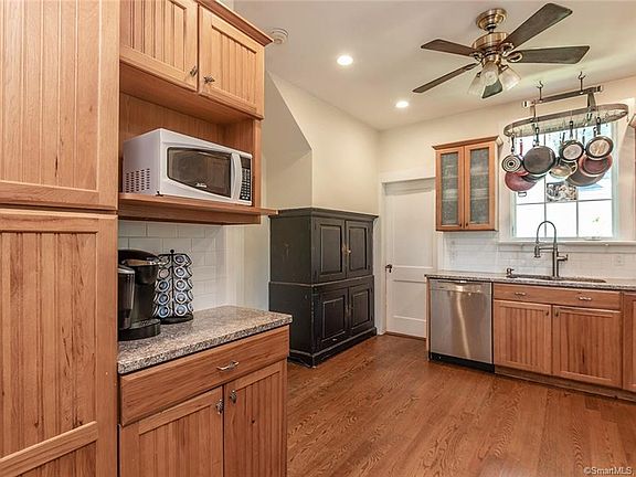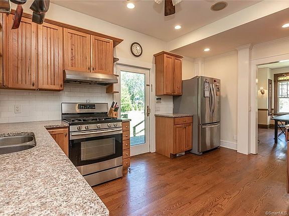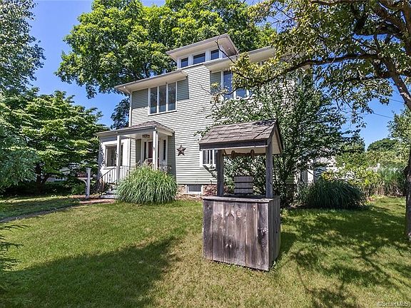 This 4 bedroom 1920s Colonial has been thoughtfully updated, while maintaining its character and charm, with original chestnut woodwork and trim throughout most rooms. High ceilings, and generous spaces on the main floor, make it a wonderful home for entertaining. The kitchen has granite counters and stainless steel appliances, and flows into the spacious dining room, suitable for large family gatherings. Grand living room features a fireplace with wood stove insert, wall sconces and a large bay window, allowing sunlight to flood the room. A bonus space on the side of the house can be used as a sunroom, playroom, or home office, and is adjacent to a full bathroom with stand up shower. Upstairs has 4 bedrooms, 2 with access to enclosed sleeping porch, which can function as office space or extra storage. Home has central vacuum and security system, an oversized backyard and plenty of off-street parking, along with a 1-car garage and storage shed. (Central air on upper level only.) Basement has partially finished space with laundry area and a large cedar closet and plenty of other storage space. Driveway is accessed from quiet Melville Avenue, and the home is a very short walk to Owen Fish Park, which has a toddler playground, tennis courts, baseball field and walking trails. Convenient location to both Merritt Parkway and I-95, and a short drive to the Fairfield Metro.