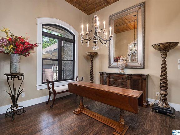 Great for Madison commuters...convenient to Highway 157 and I65. This custom built home at Terri Pines Country Club is one of a kind. It has specialized fabrication of custom doors, molding, coffer ceilings with old world charm and superior quality. Every room features exquisite craftsmanship and beautiful finishes. This one level open floor plan home features 3 bedrooms, 2.5 baths in a split bedroom plan with an office, as well as a custom sound system and a in-ground storm cellar. French doors lead to a covered living space that spans across the back of the home.The landscape is beautiful from the entrance of the drive and continuing around the property with an irrigation system.