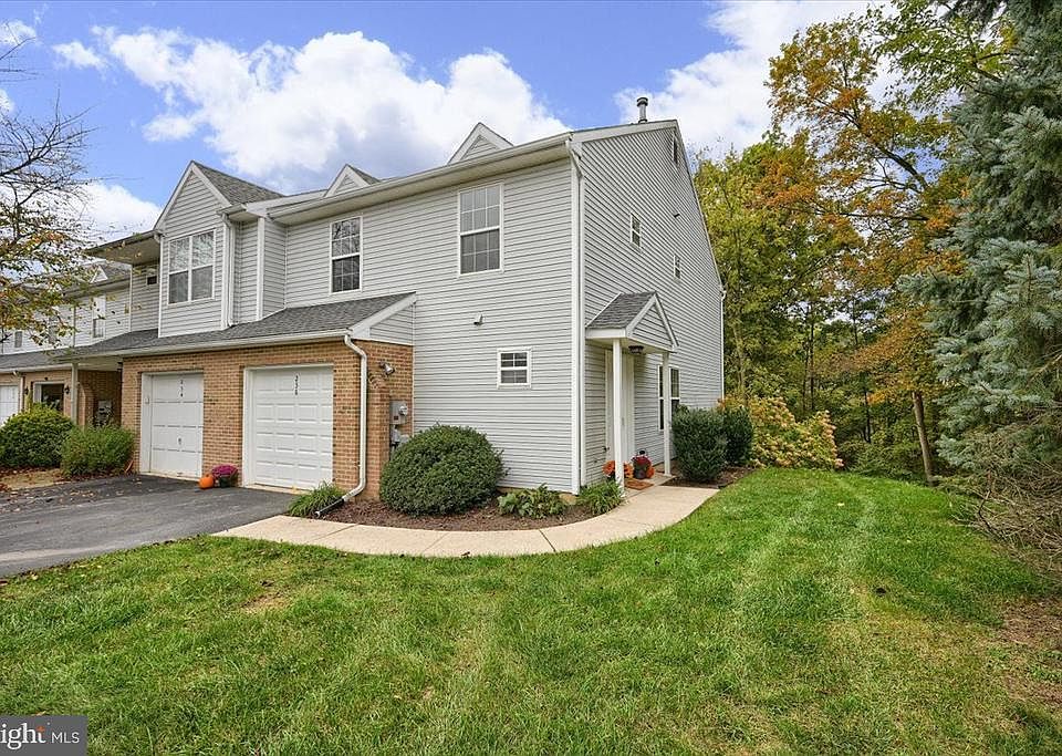 Move-in ready, end-unit, townhouse! Brand new carpet and fresh paint throughout! This is the best location in the neighborhood, backing up to woods and a creek, with plenty of privacy plus an extra long driveway and garage for off street parking for up to 4 vehicles. You'll love the spacious kitchen with TONS of cabinets, natural gas stove, pantry, ceramic tile floor and a breakfast bar. Double doors open out to the large, raised deck with beautiful views. The rest of the main floor has quality and durable laminate wood flooring, and includes an entry way with 2 large closets, powder room, living room and formal dining room.... the floor plan is open yet has separate spaces which makes this home great for entertaining family and friends. The owner's bedroom suite includes a large walk-in closet and an ensuite bath with double sinks and open shelving. Two additional, roomy bedrooms (one with it's own walk-in closet), a second full bathroom and a laundry area complete the upper floor. The lower level has a large family room with a sliding glass door to the rear patio. The family room has a wet bar but this space could easily be a 4th bedroom, office or even in-law quarters (just add a bathroom, the water line is already there!) The basement also has an unfinished room and crawl space for plenty of storage. Economical gas heat and central air too. The neighborhood association is well-run and takes care of almost all exterior maintenance, including; repair and replacement of roofs, siding, soffits and trim, driveway maintenance, snow removal, lawn mowing and landscape maintenance. The community is quiet and enclosed with a basketball court and allows FENCES with association approval. Kitchen refrigerator, washer and dryer all remain. First American HOME WARRANTY included. Schedule a showing today!
