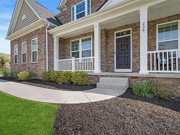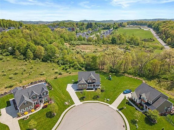 Home in the cul de sac of Fulton Crossing. Private wooded views and large backyard with NEW covered deck. This Heartland Home features a stone exterior with covered front porch, finished lower level, and morning room. Kitchen includes a large island open to the great room, stainless steel appliances, quartz countertops and a custom marble backsplash. The open floorplan makes the perfect entertaining space with the formal dining room, large family room with coffered ceilings, and kitchen that flow effortlessly together. On the second floor you will find 4 bedrooms, laundry area, and hallway bath. The Large owner’s bedroom includes a sitting area, enormous walk in closet, tray ceiling, large walk in shower with dual showerheads and vanities. The finished lower level with full bathroom is the perfect additional space for entertaining. For the golf enthusiasts, the 3rd garage is perfect for a golf simulator. Adams Township Park & Mars Schools within walking distance.
