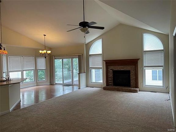 Spacious, vaulted ranch villa with high ceilings, open floor plan plus 3 beds and 3 full baths. This 2000+ sq foot home is move-in ready with fresh paint and carpet. Walk-in and enjoy the natural light in the great room with masonry gas fireplace. There's a screened porch off the kitchen to enjoy your morning coffee. Kitchen has light oak cabinets, with all appliances plus the washer and dryer can stay. Vaulted master suite w/ walk in closet and accessible full bath with separate tub and shower. An additional bedroom and full bath make up the main level. Like to entertain? You will love the finished, walkout basement w/ rec room, bedroom, and full bath plus lots of storage space. 2 car garage with ramp for access. St. Andrews Village is a quaint community w/ great access to highways and shopping. 10 min drive to downtown St. Charles, or highway 364, 3 min to highway 70. Showings begin 6/22. This move-in ready villa will sell quickly!