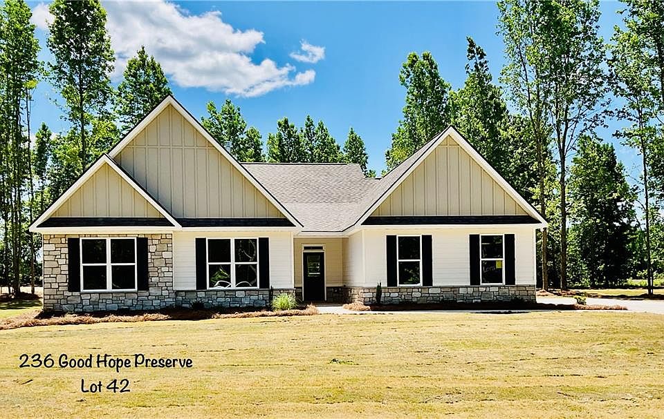 Exciting new section of the Preserve at Good Hope, Phase II, minutes from Monroe and Athens. JW Residential Homes is thrilled to introduce a new ranch floor plan, Plan 5511. For discerning home buyers that appreciate ranch home features and the farmhouse style, this plan is designed with you in mind. This stunning home welcomes you with spacious, open-concept living with plenty of light. The exterior showcases traditional board and batten front with stone water table. The front entry open to an extended wide foyer that leads to a great room featuring 10' ceilings, wood burning fireplace. The adjacent kitchen flows seamlessly to the great room and dining area. The kitchen details 42" white cabinets with a grey island, black matte hardware and kitchen faucet, granite countertops, backsplash 3x12" white subway tile, stainless steel appliances, single bowl SS sink, large walk-in pantry. With split plan bedrooms, the Owner's Suite enjoys privacy, a spacious master bathroom and Master closet, 5' tiled show, large vanity. Completing the home is an office, Guest Suite, large laundry room, 2 secondary bedroom with vaulted ceiling. This home plan delivers a welcoming home, 4 bedrooms, 3.5 baths, with plenty of light and space. Home is scheduled to be complete in April. Builder Incentive $5,000 if preferred lender is used.