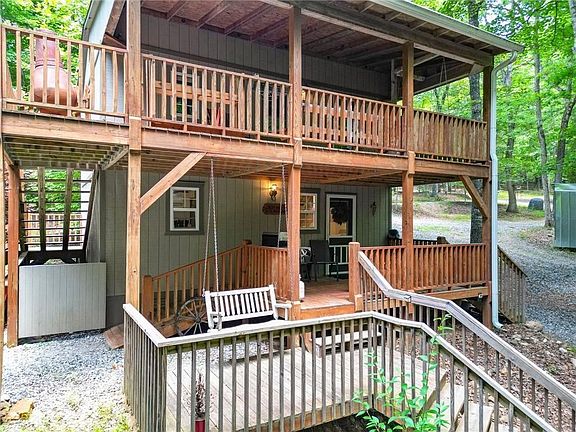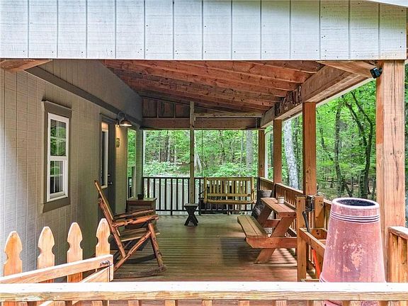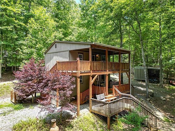 This unique treasure is up for grabs! This highly desirable income-producing property is situated in the picturesque town of Morganton, nestled in the stunning North Georgia mountains. Surrounded by serene natural beauty and conveniently located near the area's top attractions, this property offers an exceptional investment opportunity. A charming two-story tiny home nestled on 5 acres of stunning land, complete with frontage on the serene, flowing Dooley Creek, perfect for those seeking a secluded mountain retreat. This property offers unrestricted land surrounded by expansive tracts. Inside, you'll find a fully equipped kitchen, cozy living room, laundry area, 1.5 baths, and an upstairs bedroom - all fully furnished and ready for you to move in. This property features a carport building, ideal for storing your four-wheelers, tools, firewood, and more. Enjoy extensive four-wheeler and hiking trails that weave throughout the land. Multiple building spots allow you to expand your investment or build a permanent residence. The property boasts a picturesque building knoll with stunning views of the creek. Clear the land near the creek for pasture or garden area, perfect for accommodating goats, horses, chickens, and other farm animals or multiple camping sites. Abundant wildlife enhances the natural charm of the area. Additionally, the property includes a well-designed deck & fire pit area, perfect for enjoying the tranquil sounds of nature. Located on a scenic gravel road, this secluded retreat is just a 15-minute drive to Blairsville and less than 5 miles from a public boat ramp on beautiful Lake Nottely. Don't miss out on this rare opportunity to own a private oasis!
