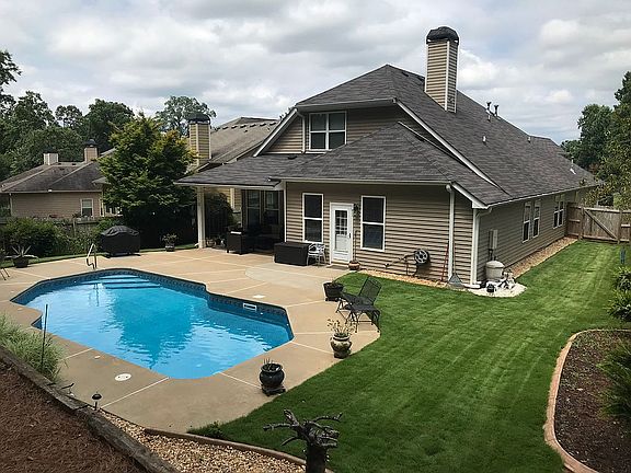 Ranch plan w/HUGE bonus/game rm/4th bedroom upstairs (the room has a closet, private full bath & separate HVAC unit. Owner's bedroom on main is privately located & has access to the pool area. The other 2 bedrooms on the main have an additional living space between them (great play room or additional living room). Home office w/french doors also on the main. Separate dining room too. Great room, family room is open to the kitchen and overlooks the pool area. Kitchen has all new stainless steel appliances (stove, dishwasher, microwave), large island w/breakfast bar area, breakfast eating area & an additional sitting area overlooking the pool. Covered front & back porches. New carpet! All new interior paint! New garage door! Relaxing in-ground pool!