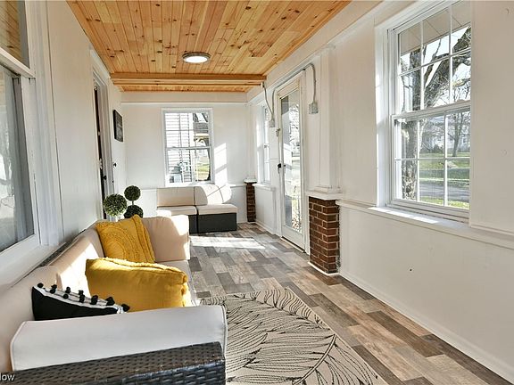 Start your next adventure the right way as you fall in love with this drop-dead gorgeous Cortland Cape Cod! Offering up two floors of recently renovated living space, this home creates instant excitement both inside and out. The handsome exterior boasts plenty of curb appeal with its inviting, natural colors and brick accent work. Meanwhile, a massive five car garage awaits around the side to include its own half bath. A front sunroom showcases a knotty pine wood ceiling, as you take in the warm, midday views. Inside, a welcoming living room presents its ash-colored flooring and large windows that spill natural light across the lavish wooden casework that divides the nearby dining room. Here additional built-in cabinetry adjoins a rear entry door to the grassy side yard and garage. Take in the stylish wood countertop and stainless accent work that brightens up the kitchen. Upstairs, a lavish full bath awaits the landing with a glass stall shower and corner shelf storage. An oversized hall closet divides the trio of lovely, carpeted bedrooms to include the impressive master and its own walk-in. A bonus room can be found along with utilities at the basement level. Lastly. a new roof has been put on both the house and garage (2023) and a new water heater was installed (2022).