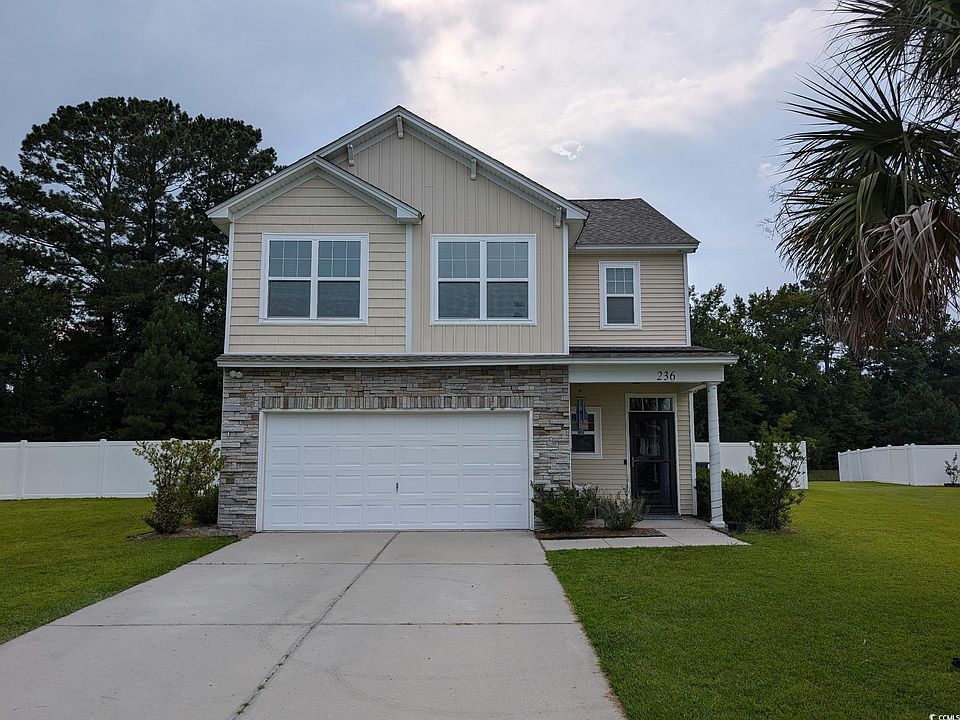 Welcome to this charming three- bedroom, two- and- a- half bath home nestled in the heart of Horry County, South Carolina. This property offers the perfect blend of comfort and Southern Style.  Inside, you'll find a spacious open- concept living area and dining area both with lighted ceiling fans. Huge modern kitchen that has been newly updated and upgraded with stainless steel appliances, quartz counter tops, custom white cabinets, tile backsplash, and a pantry.  Next to the kitchen, there is a door leading to extra storage under the stairs.  Stairs lead to a loft area/ rec room.  Primary suite has a tray ceiling, ceiling fan, walk-in closet. Primary bath has been updated with tile floors and large tile shower with glass door.  Plenty of cabinet space, double sinks, private commode area with built in wall storage, and a linen closet.   Two additional bedrooms share a full bath. Practical upstairs laundry room has cabinets for extra storage, washer and dryer to be included.  Half bath conveniently located downstairs. Large .31 acre fenced in lot.  Located just a short drive from beaches, golf courses, and everything Myrtle Beach, with downtown Conway just minutes away.  This home offers the best of coastal living with the peaceful charm of Conway and the Chandlers Run neighborhood. Square footage is approximate and not guaranteed. Buyer is responsible for verification of all information.