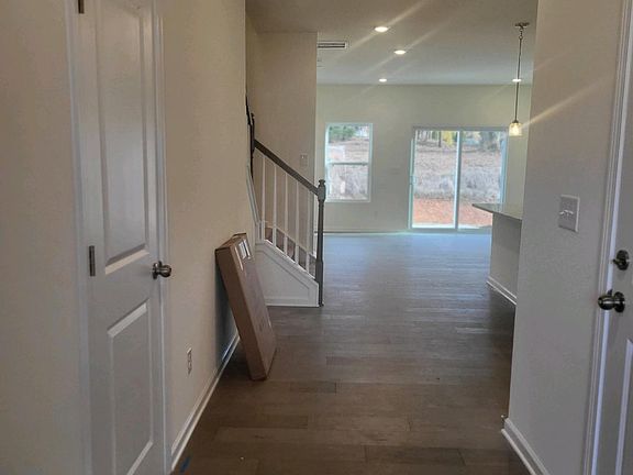 The lower level has hardwood throughout. The large kitchen has granite countertops, plenty of cabinets, and brand-new appliances with a big pantry. The living room, dining room, and half bath are perfect for entertaining friends and family. And then the spacious garage gives you extra storage!! The concrete patio behind the home is just right for cooking out and enjoying the fresh air. All bedrooms, laundry (washer /dryer included), and loft are located on the upper level. The spacious master suite features dual vanity sinks with a tub and a separate standing shower.