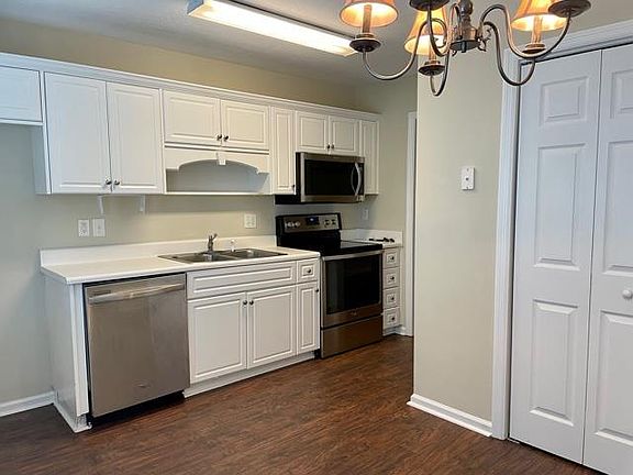 Super cute and move in ready two bedroom/two bath townhome in The Villages of Greenbrier! New carpet in both bedrooms, wood flooring in the combo greatroom/diningroom, tiled kitchen and baths. The eat in kitchen features stainless appliances and pantry. Owner's bedroom with walk in closet and private bath. Private fenced backyard. Owner prefers cash only offers.