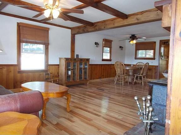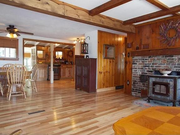 UPDATED WITH RUSTIC CHARM! Updated farm house on 2 acres with great views! Original barnwood doors, wide plank floors. New kitchen w/ss appl in bright, open great room featuring Vermont soapstone fireplace and new floor. Covered front porch to enjoy the sunsets from! 2 yr old furnace & well pump, newer roof, aeration septic, windows, siding, trex porch. Screened porch, stone patio, 2 story barn.