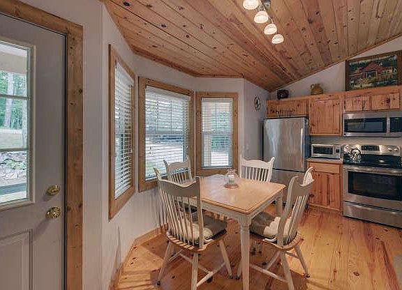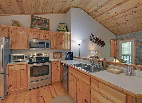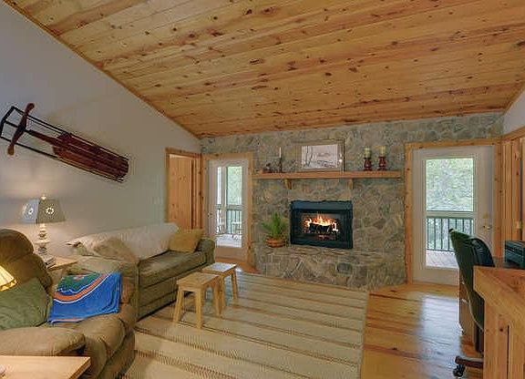 Completely Upgraded and nothing left to do except move in. This 3 Bedroom 3 Bath Home offers 2 Masters on the Main Level with 2 Full Attached Baths. Cathedral Tongue & Groove Wood Ceilings, Large Fieldstone Fireplace, Yellow Pine Hardwood Floors. Spacious Kitchen, Stainless Appliances, Screened in PRIVATE Back Deck, Additional open deck for Grilling, Covered and overlooking Mature Woods of a Private Back Porch Setting. Full Finished Basement with Additional Bedroom, Full Bath and Living Room & Walkout Basement leading to the Gentle Grounds for gardening or Outdoor Living Area, New 2 Car Garage on Poured walls recently added, New Metal Roof, Exterior Paint, Trane HVAC Installed 2016. Easy Maintenance for Full or Part time, Cabin is Move in Ready! *Sold Fully Furnished*