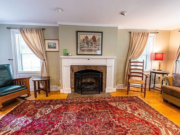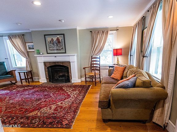 Character and charm await you in this classic Delmar colonial that offers gorgeous hardwoods throughout. Featuring four bedrooms and two full updated bathrooms, plus a den. Cozy up to the gas fireplace in the living room off the remodeled kitchen with marble counters and updated appliances. Plenty of storage and built ins! This well maintained and updated home is located in the blue ribbon Elsmere elementary district within Bethlehem schools. Addition allows for possible in-law living situation or perfect for someone who needs to work out of their home with side entrance off the driveway. Large backyard is fully fenced in and there is plenty of room to add a garage! Walk to the rail trail, Four Corners, and all Delmar has to offer! See list of updates!