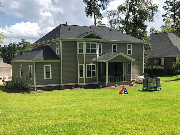 Beautiful, custom-built home in 2017 with a gorgeous exterior and lake view from the front and includes all the extras you could imagine! No expense was spared on the 10 foot ceilings, tray ceilings, coffered ceilings, the over 7 inch baseboards, in-ceiling surround sound, media closet to hide wiring and the window coverings. The open-concept spacious kitchen has upgraded granite and an upgraded appliance package that includes a gas range and double ovens as well as a Butlers pantry off the kitchen leading to the dining room. Off of the kitchen and main living room there is a screened-in porch with a cozy stacked-stone gas fireplace to enjoy. The guest bedroom with private bathroom is on the main floor along with a powder room, mudroom, office and exercise room. The master suite includes a sitting area and french doors leading to a spacious bathroom with separate vanities, oversized shower with dual shower heads and a large, walk-in closet. There is also a bonus room which can be used for a playroom or a media room. The home also contains an over-sized three car garage with epoxy flooring. Also included is a tankless water-heater and separate HVAC units for energy efficiency. This lovely home sits on over half an acre and has an invisible fence installed with 2 pet collars. You can enjoy the beautiful neighborhood of Timberlake Estates and w/an optional membership to the Timberlake Country Club you can enjoy the pool, tennis courts, golf and the Purple Martin restaurant!