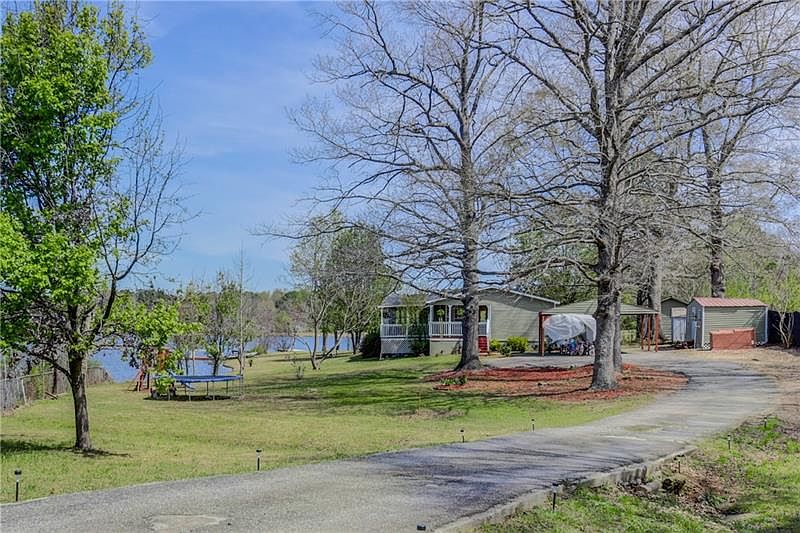 Amazing Front Lake Home in Skyland Lake community ready to move in and in great condition. This mobile home features 3 bedrooms, 2 full baths, large kitchen with stain cabinets, granite counter-tops, SS appliances, breakfast area, separate dining room, family room, laundry room, large deck & screen porch. Beautiful Views of the lake. Property sits in a 1 acre lot and has 3 small docks, two sheds and a carport for parking. Property is completely fenced and is sold in AS-IS condition. New HVAC system.