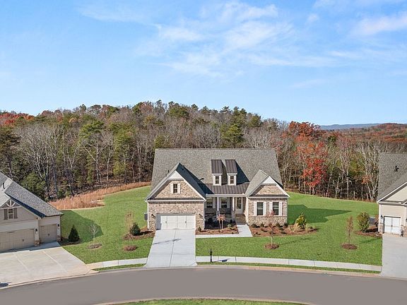 Stunning Wellington Floor Plan on Over an Acre in Horizon at Laurel Canyon. Introducing an exceptional opportunity to own the coveted Wellington floor plan, featuring the highly desirable "D" elevation. Once showcased as our professionally designed model home on Lot 45, this impressive residence is now available on Lot 35-offering more than an acre of land with a beautifully level backyard that opens to serene, wooded views for unmatched privacy and tranquility. This is one of the most sought-after flat homesites, perfectly situated at the top of the mountain. Inside, the home features an open, effortless flow with 3 bedrooms, 2.5 baths, and a spacious office or study. The guest bedrooms and full bath are ideally positioned on the opposite side of the home from the primary suite and study, ensuring maximum comfort and privacy for family or overnight guests. The formal dining room exudes classic elegance with wainscoting and a tray ceiling, while the generous family room captivates with a soaring stone fireplace complete with gas logs and a starter-an inviting focal point for cozy evenings. The kitchen and breakfast area are designed with both style and function in mind, featuring a large island perfect for entertaining or everyday casual dining. Step outside to the covered back porch and enjoy breathtaking wooded vistas and complete seclusion-your own private outdoor sanctuary, ideal for morning coffee, evening relaxation, or alfresco dining. The walk-out full basement provides endless possibilities for future expansion, whether you envision additional living space, a home theater, game room, or abundant storage. Exterior landscape lighting adds a warm, sophisticated touch to the home's evening ambiance.