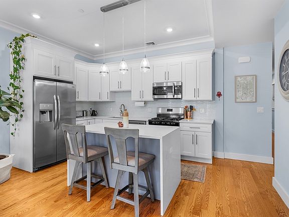 Stunning 2021 renovation, this 3 bed/2 bath unit spans the entire 1st floor of the building. Walk into a sunny and open living room/kitchen featuring a large center island, quartz countertops and stainless steel appliances. Tucked away as you walk down the hall are the bedrooms, culminating with a large primary suite. This primary boasts a sizable built out closet and an attached bathroom with a large glass shower. Additional features include central ac, in-unit washer/dryer, very high ceilings, hardwood floors, additional storage in the basement and a newly installed gate leading to your large shared back patio. Just steps from the blue line, many restaurants, parks, markets and all that Eastie has to offer. The gem you have been waiting for!