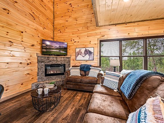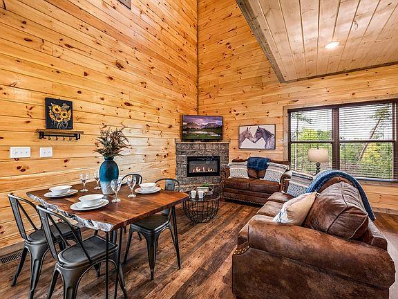 Dream mountain retreat in the heart of the Great Smoky Mountains! This charming three-bedroom pool cabin is not only a perfect getaway for you and your family but also an excellent investment opportunity as a short-term rental. Enjoy the tranquility of nature just outside the hustle and bustle while taking a dip in your private pool. The cabin has an open floor plan, featuring a cozy living area with a stone accent electric fireplace, a fully equipped kitchen, and space perfect for entertaining. Each of the three bedrooms offers a peaceful haven for relaxation after a day of exploring the nearby hiking trails and attractions but also equipped with gaming systems and entertainment for the kiddos. Step outside onto the deck and savor the mountain views while grilling or simply unwinding in the hot tub. With its prime location near popular tourist destinations, this cabin promises an exceptional rental income potential. Don't miss out on the opportunity to own your piece of paradise in the Great Smoky Mountains! Sellers have upgraded the pool pump for easier cleaning and installed keyless entry locks. Driveway is extra large for plenty of parking. This cabin is ready for you or your guests as soon as you close!