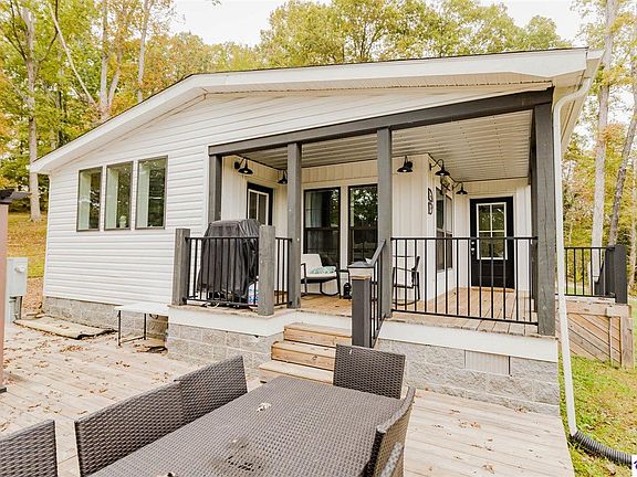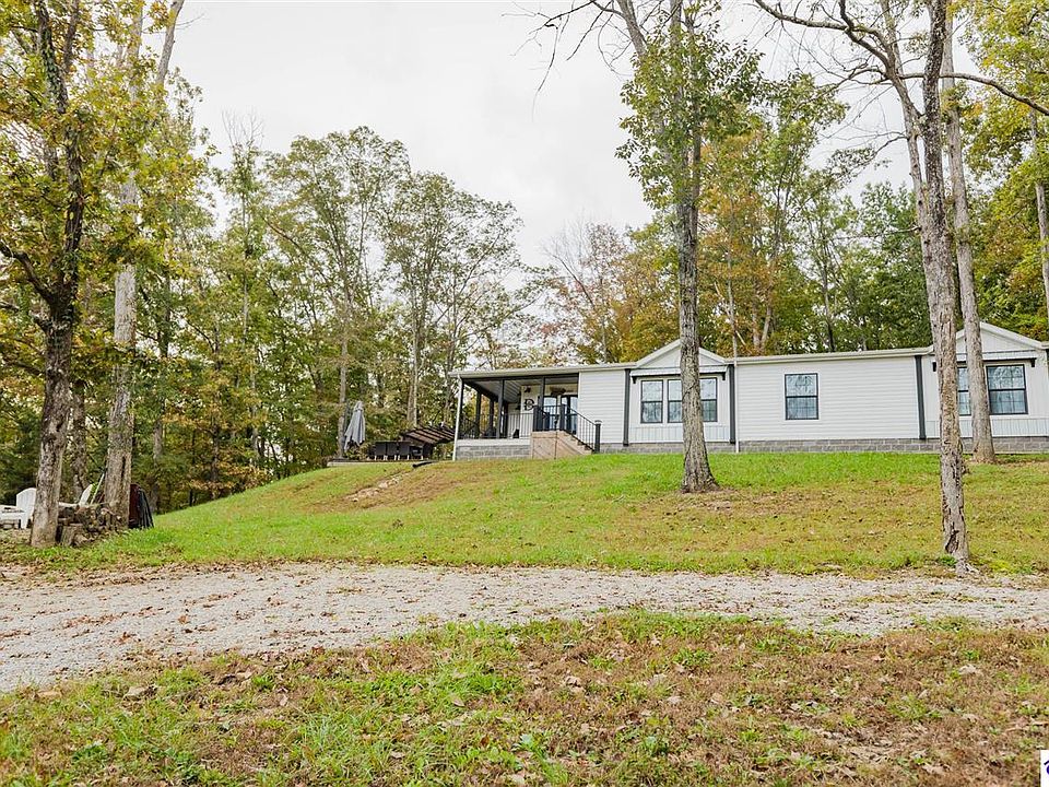 Immaculate home in a very sought after neighborhood at Nolin Lake. This 3 bedroom, 2 bathroom home sits on 3 lots less than a half mile from the neighborhood boat ramp. You will fall in love with the huge kitchen island and beautiful wood accents. The living area is large and open with plenty of room to entertain or just kick back and relax. All 3 bedrooms are large. The master suite is huge and features a standalone tub with separate shower. Outside has a nice porch and deck area perfect for sitting and enjoying the outdoors. A firepit area in the front is great for cool evenings. The home is being sold with all of the furniture included except the couch in the master bedroom and the items hanging on the walls. You dont want to miss out on this golden opportunity. Call for your showing today.