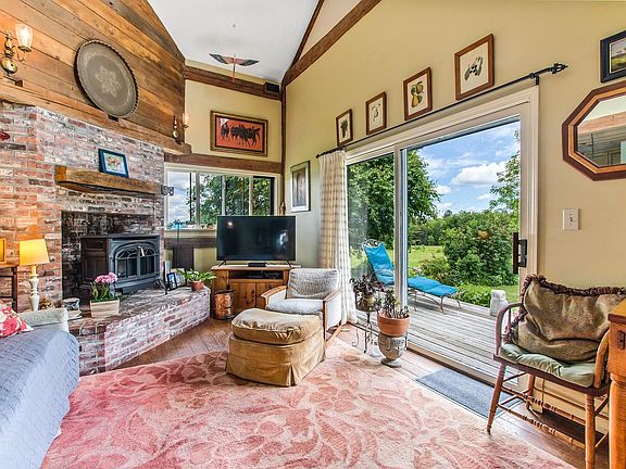 This iconic country Cape offers a surprising amount of living space and the flexibility of two separate but attached homes. Enter the Cape side to a cheerful country kitchen. Living and dining feature built-ins and a propane stove for ambiance. A suite of first floor rooms with bath offer opportunities for a first floor master suite. Upstairs are three bedrooms with adjacent bath. Pass through the connector to a stunning Contemporary home used for family, but with options to rent separately. Cleverly converted from an original barn, the wide open living/dining takes advantage of amazing views of Mt. Kearsarge and surrounding open fields and meadows. The country kitchen offers an abundance of cabinets and storage. A convenient first floor office features many built-ins. Upstairs find two large bedrooms with adjacent bath. An attached two car garage offers dedicated workshop spaces. A separate stairway takes you to a fantastic artists studio and bedroom featuring access to a rooftop deck with incredible views. An inviting open porch overlooks a lush and private backyard with lyrical flower gardens framing stunning views of distant mountains and amber fields. Much of the view includes 140 acres of conserved land. Walk to the village for shopping, theater and fine dining. Bucklin Beach is a short walk away and offers boating and swimming. The best of village convenience and peace and quiet of the country. Subsidize your living costs by renting one side and enjoying the other!