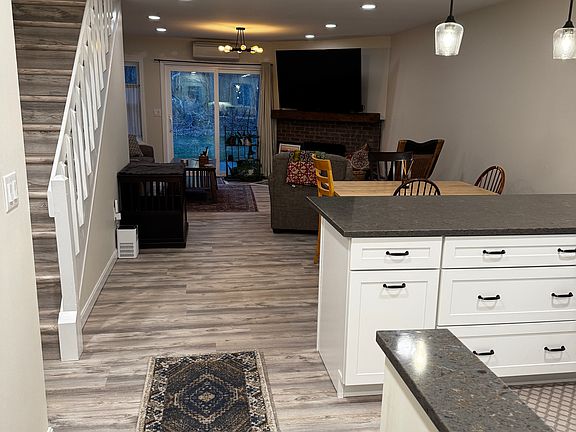 This is an end unit condo, completely remodeled in 2023. Roughly 150 yards to pool and tennis courts. One car garage space and one additional parking space. Each bedroom has a large closet and there is under the stair storage. The price is for a furnished condo that includes mounted TV in main living room, all furnishings as seen in photos (minus small twin bed in master bedroom), plates, glasses and cutlery, etc. Each bedroom and main living room is equipped with a heat pump head to provide AC and supplemental heat. Natural gas heat and hot water, new washer and dryer, all LED fixtures and new windows and doors makes this an energy efficient unit. Price includes water. Tenant responsible for electricity, natural gas and internet service. Owner pays water. Tenant responsible for electric, natural gas, and ISP. $2300 security deposit and first month's rent required. Annual lease.
