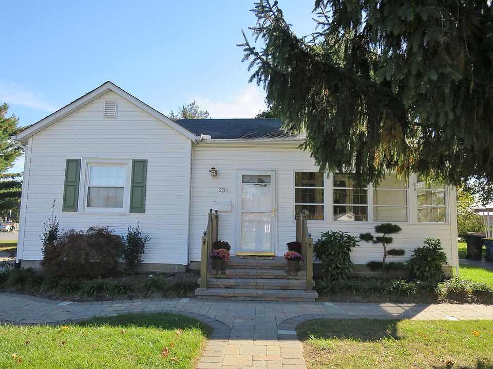 Classic charm with all the modern amenities. It starts with the curb appeal! Beautiful paver steps and walkway with integrated lights. Enter the front porch with new flooring and paint. The living room's centerpiece is the brick wood burning fireplace. The home flows through to the dining room and the completely remodeled kitchen. Corian counter tops w integrated sink, Kraftmaid 42" cabinets and hardwood floors. The main bedroom has two closets and is next to the updated full bath. One bedroom and an office complete the living space on the main level. Upstairs is a spacious third bedroom and another full bath. The basement with bilco door has been painted with dri-lock and allows for plenty of storage. Other upgrades include a new roof in 2001, new boiler and water heater in 2004, central air in 2005, vinyl siding on the home and a garage door in 2006. The exterior features include a 2 tier deck with hot tub and a detached one car garage. Pride of ownership throughout! Truly move-in ready.