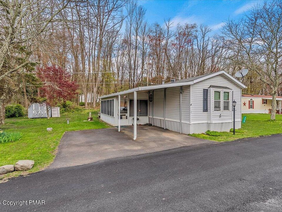 Located In Beautiful PMHE! Close to 80 & 209. Close to Shopping, Delaware Water Gap Toll Bridge & Much More! Great Split Floor Plan. 2 Bedrooms 2 Full Baths. Each Bedroom on Opposite Side. Homeowner has kept this Home well Maintained! New Furnace, Air Conditioning, Beautiful Floors! Enclose Patio & Carport. Has Shed on Property. Buyer Must Complete an Application for New Residency. Lot Fee is $500.00 a month. Includes Water, Sewer & Trash. Schedule Today!!