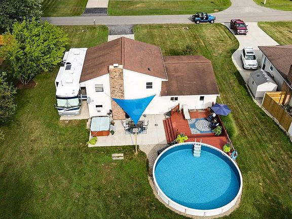 Situated in a great Ontario neighborhood, this place reminds you that there's more to life than hard work! Built for entertaining inside and out! Expansive concreted patio w hot tub, cozy sun deck with pool, foundation stone fire pit and a "Garage-Mahal" man space for movie night and golf cart storage! The house has been completely remodeled, too! Newer Andersen windows, flooring, paint, lighting and hardware. Family room w brick fireplace. Fully applianced stainless kitchen. Recently finished flex space in the basement would make a great 4th bedroom. Add'l concrete aprons for RV storage. Great location - private, country feel yet close to everything!