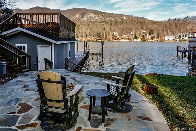 LAKE LURE LAKEFRONT........ This main channel, lakefront home with pristine mountain views offers 3 bed/ 3 1/2 baths. Outdoor spaces include decks, covered porches, custom patio with built in fire-pit, boathouse deck and a beach area. The lower level bedroom area has its own access. Owner had boat house enclosed for all the "lake toys" and installed boat lift and boat slip to accommodate a pontoon boat and a speed boat. The ultimate lakefront gathering place. Offered at $799,500