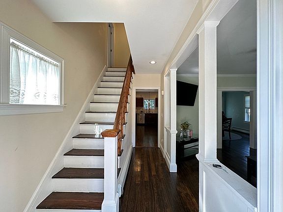 Recently remodeled, move in ready colonial with antique hardwood floors, bright and airy floor plan & high ceilings. This home features a very spacious first floor layout with a tiled mudroom, coat closet, updated full bath, spacious kitchen with stone counters, stainless steel appliances and a pantry for storing kitchen items. The open plan features a good-sized living room that flows into the dining room then on to the deck. Upstairs has 3 generously sized bedrooms each with lots of closet space and a second full bath with side-by-side washer & dryer. Mechanical & electrical updates done in 2017-2018 include a new roof, pex plumbing, vinyl windows, high efficiency 4 zone Weil McClain natural gas boiler and 200 amp electric service. A must see!