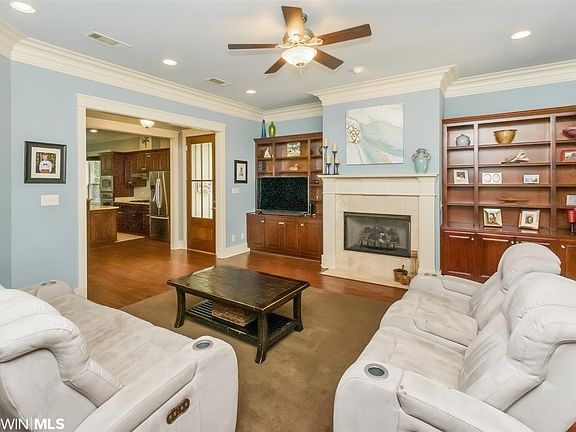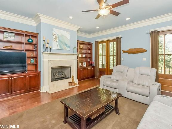 Very unique, custom built home in the heart of Fairhope. Built 2006. 3 Bedroom 2 1/2 baths. 10' ceilings with heavy crown mold and New Orleans style baseboards throughout sporting engineered hardwood floors in the living areas. Tile in wet areas and new carpet in bedrooms. Kitchen has beautiful granite with breakfast bar and eat in breakfast room, stainless appliances, two big pantries. Gas fireplace in the family room. There is a bonus room that could be a playroom, sunroom or an office. Open decks front and back. Oversized 1000 ft. garage for boat storage, golf carts or workshop. It has an oversized master with Hugh closet with built in chest of drawers. New HVAC as per seller. Very private with public tennis courts almost across the street. It has gas hook up on the deck for a grill and the yard has pretty mature landscaping. It is in Fairhope Elementary west school district. All updates per the seller.