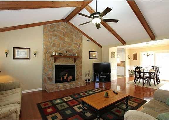 This is a cream puff home. One story bring ranch in an awesome neighborhood, zoned for awesome schools.Perfect for anyone that wants low maintenance living. The home was renovated several years ago to include new roof, new windows, hardwood floors and re-plumbed. Enter the home into the gorgeous great room with soaring vaulted ceiling and fireplace. Hardwood floors adorn all the living areas except the baths which have tile. Master bedroom is spacious enough for a king sized bed and has a full bath attached. This is a must see! Please note fireplace has been sealed off and is now electric logs.