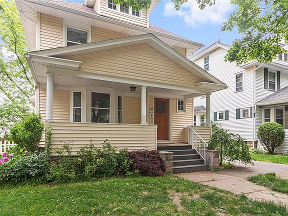 Well kept colonial located in the HEART of The Ellwanger-Barry neighborhood. The home offers plenty of charm and character w/ hardwood flooring, pocket doors, large floor molding, crown molding, leaded glass, built in shelving & wood banister. The front porch welcomes you to the property. Once inside you will find an amply sized living room w/a bay window. The huge formal dining room, also w/ a bay window, is made for entertaining & has a door that leads to the back deck. The updated kitchen offers plenty of storage/counter space & a walk in butlers pantry (island included in sale). Off the kitchen you will find an updated 1/2 bath. On the second floor you will find 3 bedrooms & a full updated bathroom w/ heated floor. The primary has a huge walk-in closet/dressing room. Updates include: 1/2 bath 2014, recently refinished wood floors, glass block windows, HW -2022, electric panel, chimney from roof up - 2020. Walking distance to Highland Hospital, Highland Park, Lilac Festival, neighborhood "Porch Fest" and all South Wedge entertainment venues. Showings start 06/15 at 9am. Delayed negotiations 06/20 at 12pm. Please allow 24 hours for the life of the offer.