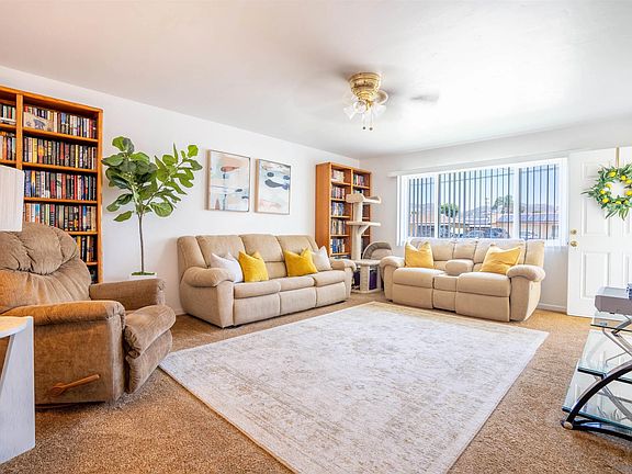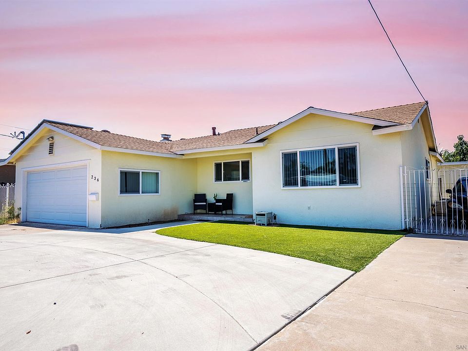 Spectacular low maintenance home in Granite Hills! It has 3 bedrooms and 2 baths with great curb appeal with plenty of parking with a U-shape driveway, RV parking on the side and 3 spaces for cars in front of the two car garage. FULLY paid (18) solar panels with a newer roof, dual pane windows and an AC unit perfect for the warm days there is even a mini split in the garage! As you walk in you enjoy the natural sunlight throughout the living room which leads down the hallway to the bedrooms and baths. In the kitchen one can enjoy mountain views over the kitchen sink and after stepping down you enter the family room with a fireplace that takes you into the low maintenance backyard and shed. This shed has four different compartments with a total measurement of: 23x11