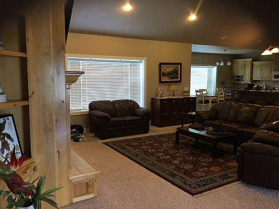 PENDING. The builder designed and built this 4,900 square foot, 6 bedroom and 3-1/2 bathroom, custom house as his personal home so he put his heart and soul into it. The well-insulated exterior is foam concrete, foundation to rafters (R-50 walls and R-48 ceilings), and it has a 50-year roof. It is heated via in-floor hydronics (with 9 zones) and is cooled by a central air system. There is a 3-car heated garage, with a 20 by 30 detached garage built to match the house. Utilities (electric, natural gas, water, and sewer) average $165 per month. The three entertainment centers have gas fireplaces: in the living room, master bedroom, and in the basement great room. The upstairs woodwork is knotty alder and the basement woodwork is pine. All upstairs counters are granite. The living room has an 18 foot vaulted ceiling; there is a 16 foot vaulted ceiling in the master bedroom; and the rest of the house, both main floor and basement, have 9 foot ceilings. Other benefits include: instant hot water throughout, a security system, a water softener, a central vacuum, and a whole house fan (5000 cfm). The yard is fully landscaped and it has an automatic sprinkler system. Additionally, there is a 1500 sq ft raised and watered garden area. The weight machine and pool table stay with the house.
