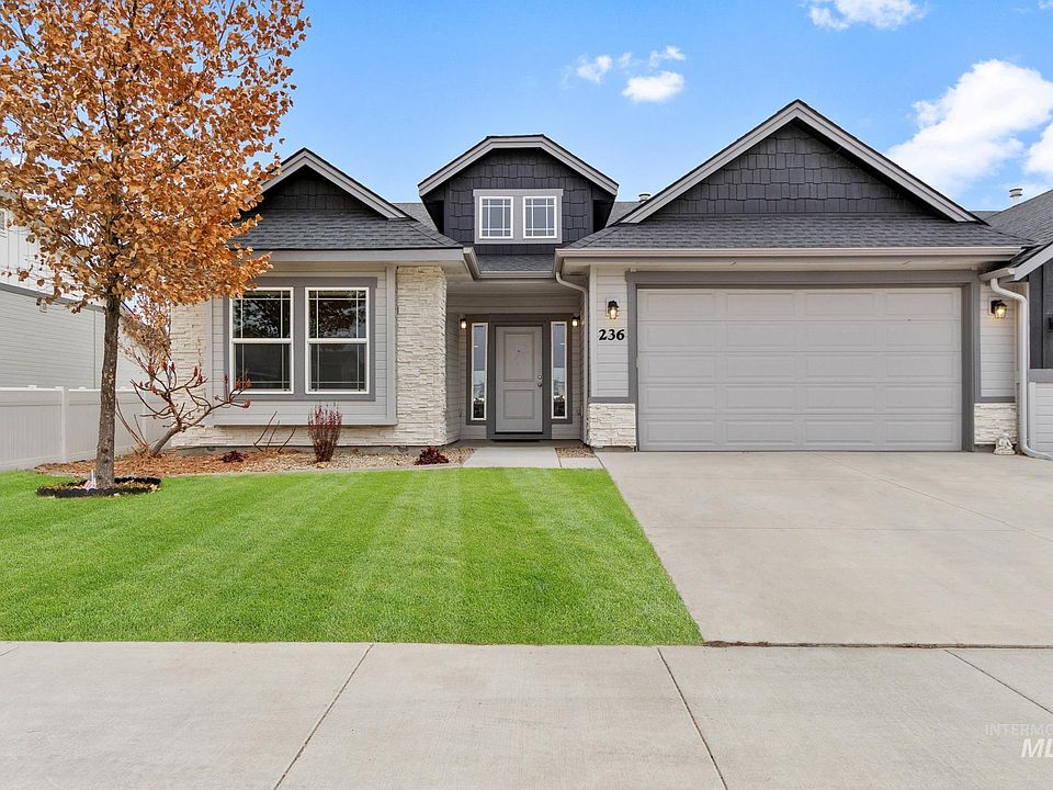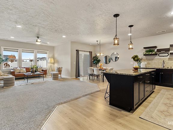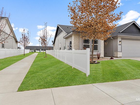 Stunning townhome in Kuna. The east covered patio is the perfect for evening BBQ. This townhome is like new and very clean. The kitchen includes solid surface counters, full tiled backsplash, Expresso color cabinetry & SS appliances. Baths both feature solid surface counters with tile accents and dual vanities. Master bath has separate soaker tub and tiled shower & walk-in closet. Walkway is just steps away to access the communities 2 acre private park. Home also has solar panels.