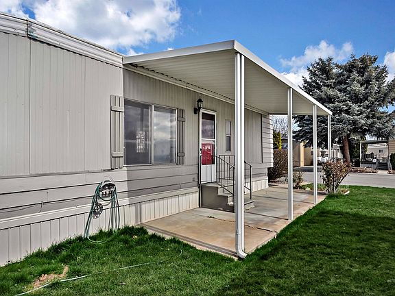 FIXER UPPER opportunity in the lovely 55+ gated community of West Meadow Estates! This home offers great potential for a handy buyer to bring their vision to life. Inside you'll find an open living area that’s perfect for relaxing & is a blank slate to update & personalize to your taste. You’ll also find two generously sized bedrooms including a primary suite with an ensuite bath, plus a second full bathroom providing added convenience for guests or everyday use. The functional kitchen includes all appliances. Outside, enjoy quiet evenings on the covered patio, park in the extra-long carport, & keep your belongings organized in a large storage shed — even your dog will have their own kennel to call home! Space rent is $824/mo incl water, sewer, & community amenities. West Meadow Estates offers a great lifestyle with a clubhouse, dog park, social events, & rentable RV space. Located in the heart of Boise just minutes from shopping, restaurants, parks, & hospitals. SOLD AS IS — seller won’t be making repairs.